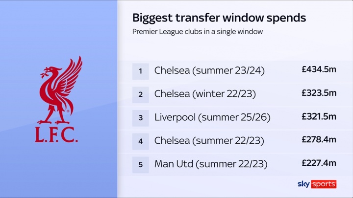 英超单个转会窗口支出榜1-Chelsea 2023-24夏季窗口4.345亿